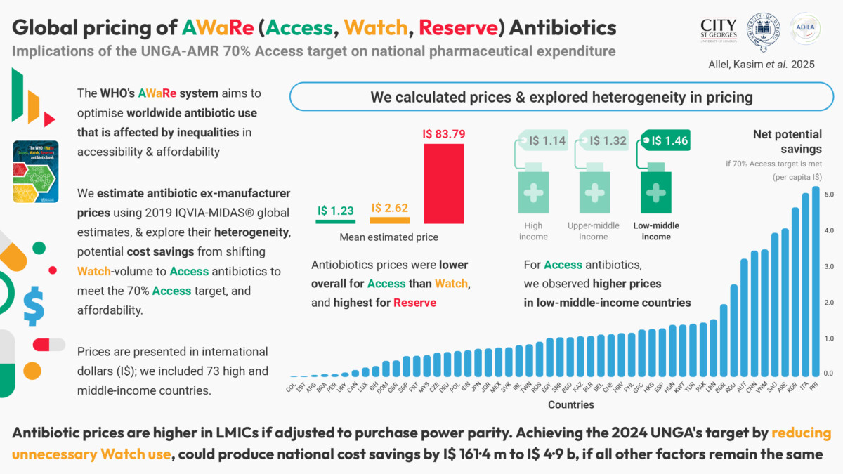 This study examines the global pricing, affordability, and potential savings of key AWaRe (Access, Watch, Reserve) antibiotics.